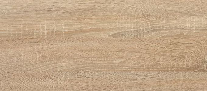 Декор Дуб Сонома - классика мебельных декоров. Декор со следами распила выглядит естественно и имеет более выраженный эффект ручной работы в отличие от классических репродукций дуба. Это свойство подчёркивается структурой W2 Глубокие поры дерева. Цветовой оттенок натуральный хорошо подходит к бежевому, серому и коричневому, однако хорошо сочетается и с цветовыми акцентами. Комбинации с белым цветом подчёркивают светлые поры и пользуются особой популярностью в кухне.