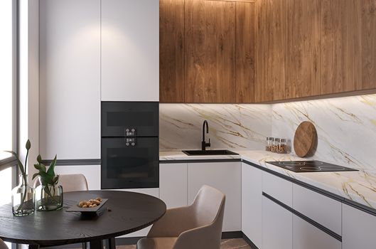 Дополнит интерьер любой кухни в сочетании с золотистой фурнитурой.