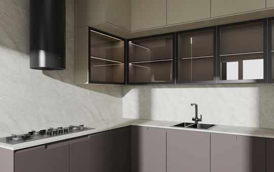 Этот светлый изящный декор удивительно точно повторяет всю красоту береговых скал острова Итуруп, самого крупного среди всех Курильских островов. За счет светлых прожилок этот декор приобретает особую легкость и прозрачность и великолепно воспроизводит рисунок древней вулканической породы на вашей кухне.