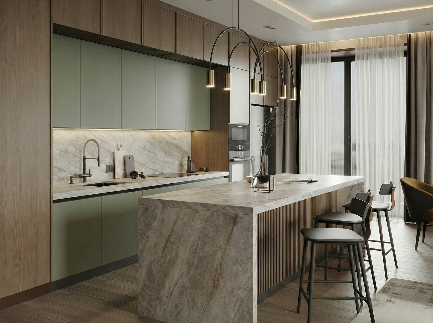Столешница в декоре Бердские скалы выполнена в оригинальной цветовой гамме, отражающей природу сибирских пейзажей. Ее уникальная структура напоминает рельеф знаменитых скал, эта столешница станет центральным украшением вашей кухни.