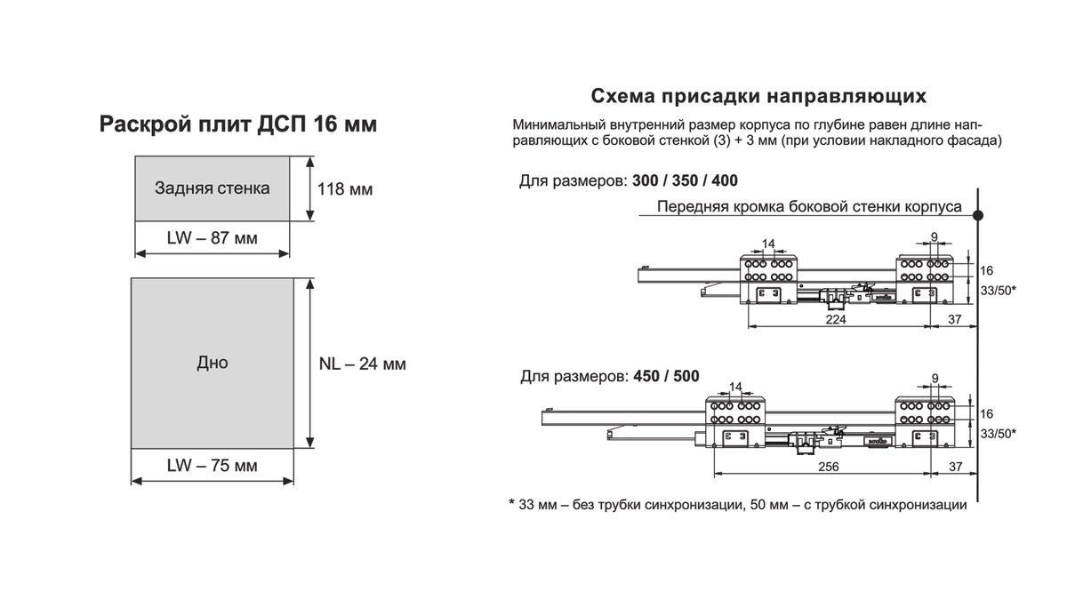 Для сборки выдвижного мебельного ящика на базе СТАРТ PUSH SB29 необходимо самостоятельно изготовить фасад, заднюю стенку и дно ящика.