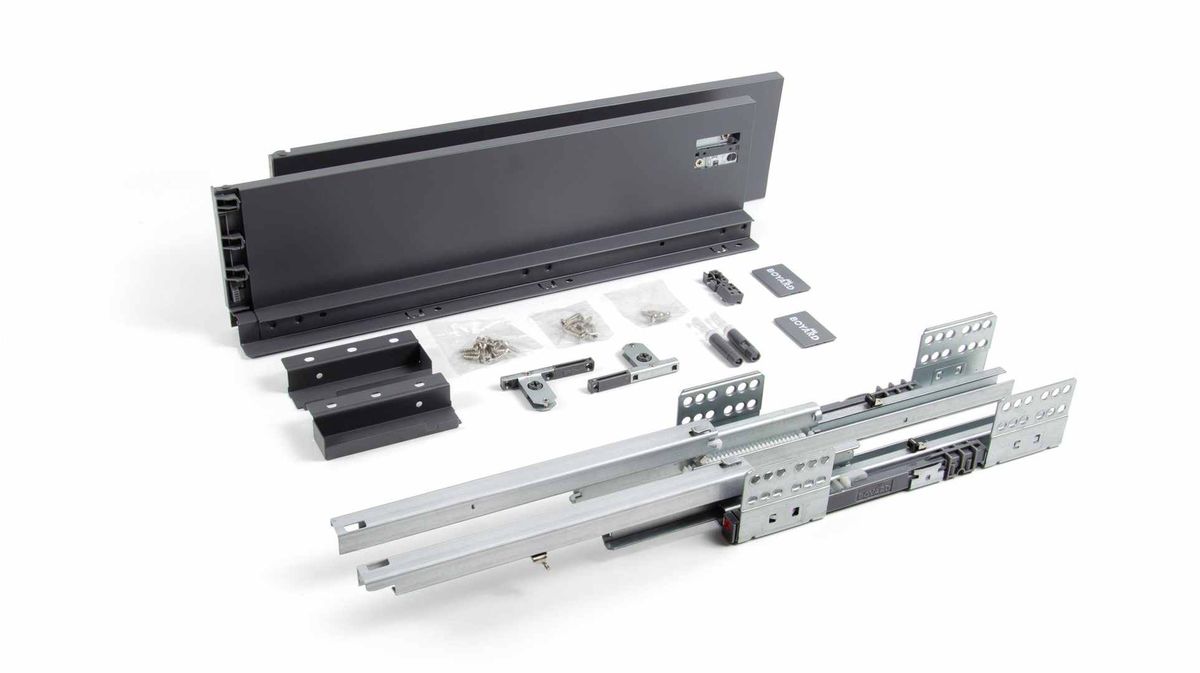 Комплект SB29 включает в себя: направляющие (левая и правая), детали для установки трубки синхронизации с крепежом, держатели задней стенки, традиционные боковые стенки, фиксаторы фасада, заглушки, крепёж.