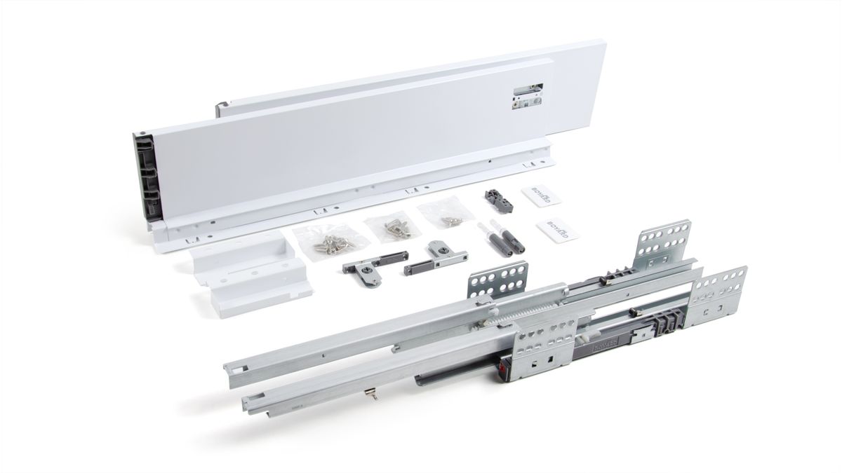 Комплект SB29 включает в себя: направляющие (левая и правая), детали для установки трубки синхронизации с крепежом, держатели задней стенки, традиционные боковые стенки, фиксаторы фасада, заглушки, крепёж.