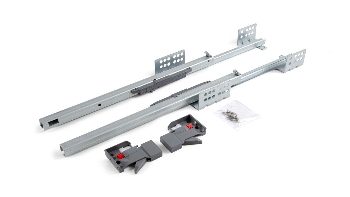 Направляющие обеспечивают комфортное движение, лёгкое открывание от нажатия на фасад и имеют защиту от случайного открывания «на себя» на протяжении 100 открываний.