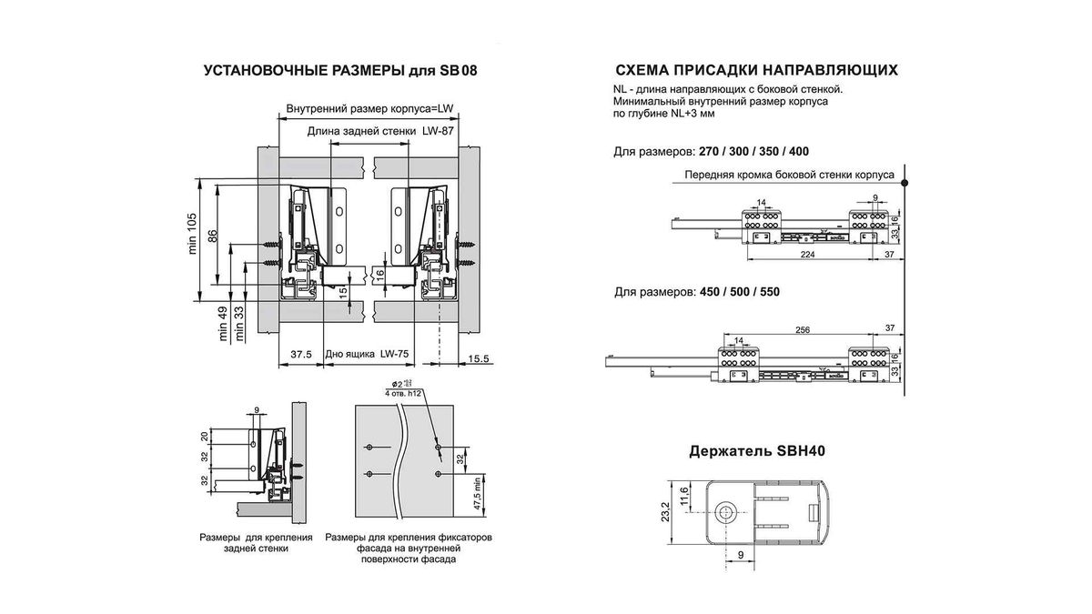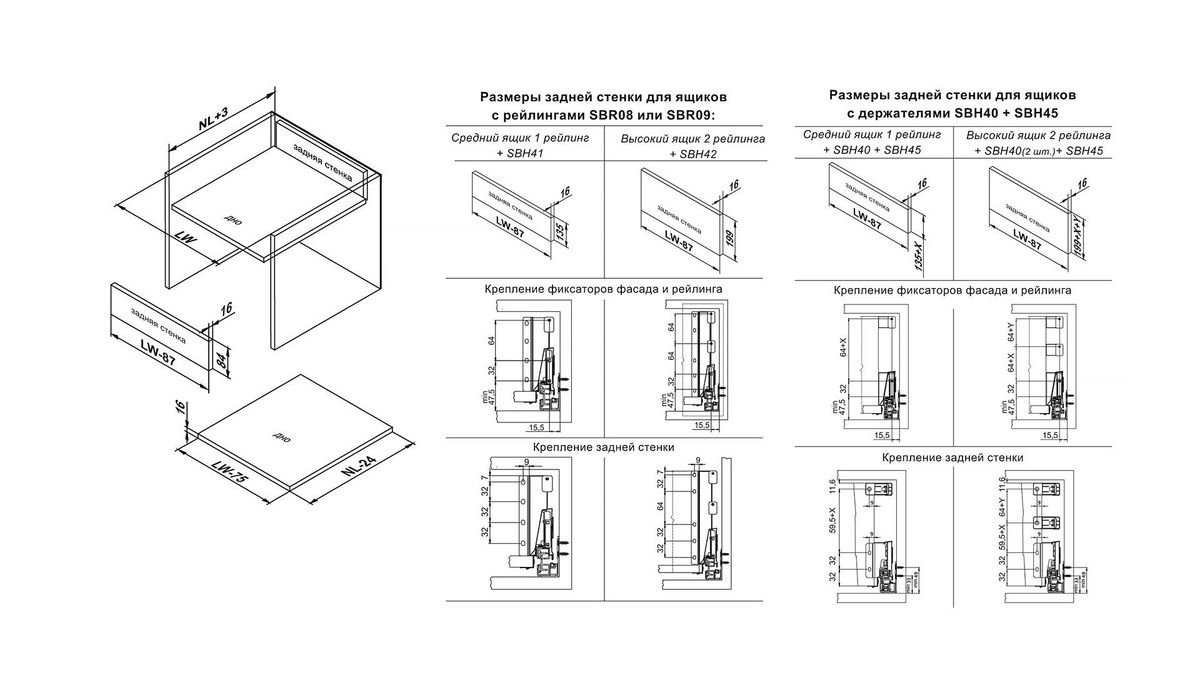 SBH40 – держатель рейлинга к задней стенке выдвижного мебельного ящика. Продукт предназначен для надёжной фиксации и установки круглого (SBR08) или прямоугольного (SBR09) рейлинга.