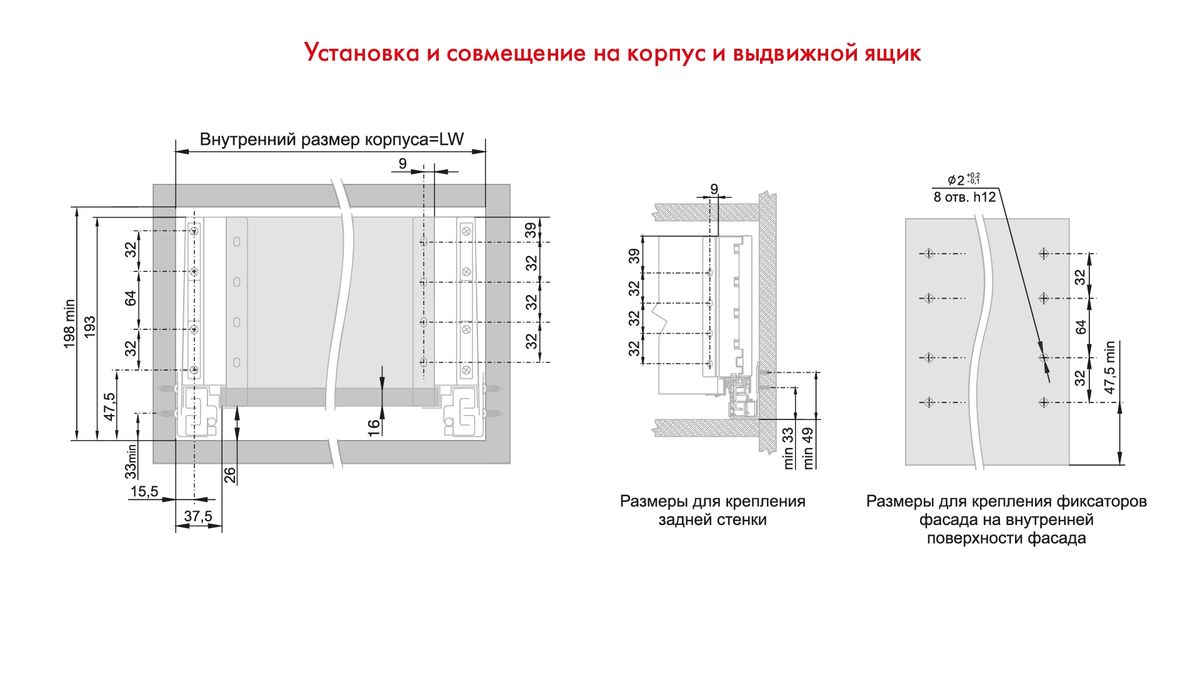 СТАРТ SB20 – комплект систем выдвижения для сборки высокого выдвижного мебельного ящика с прямыми боковинами высотой 167 мм для минимальной высоты проёма 198 мм. Комплект включает в себя направляющие, прямые боковины, держатели фасада и задней стенки, заглушки с логотипом BOYARD и необходимый крепёж.