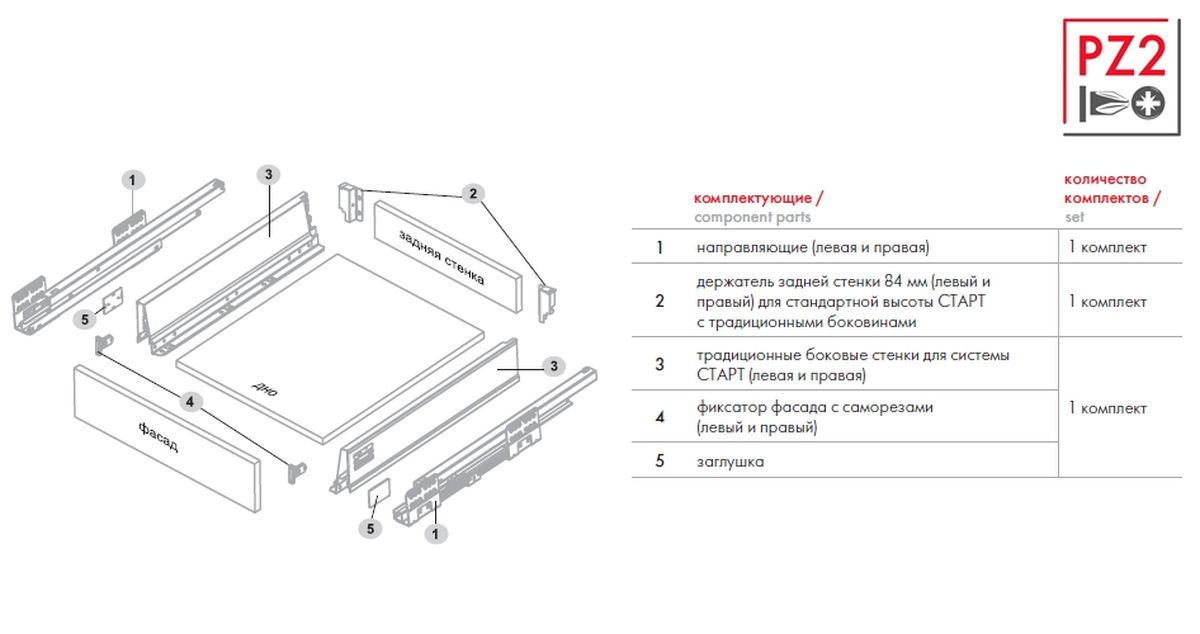 | Линейка: | Система выдвижения СТАРТ раздельными комплектующими |