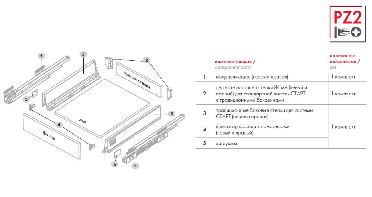 Линейка: | Система выдвижения СТАРТ раздельными комплектующими |