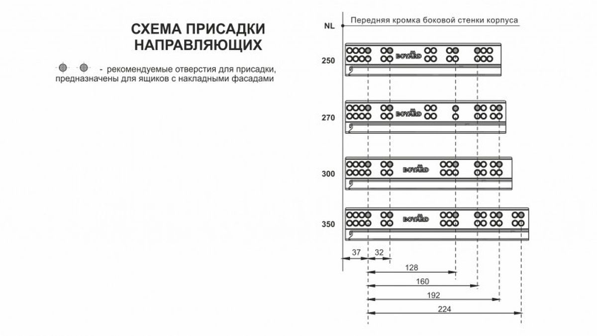Раскрой и присадочные размеры идентичны направляющим скрытого монтажа B-Slide DB8881.