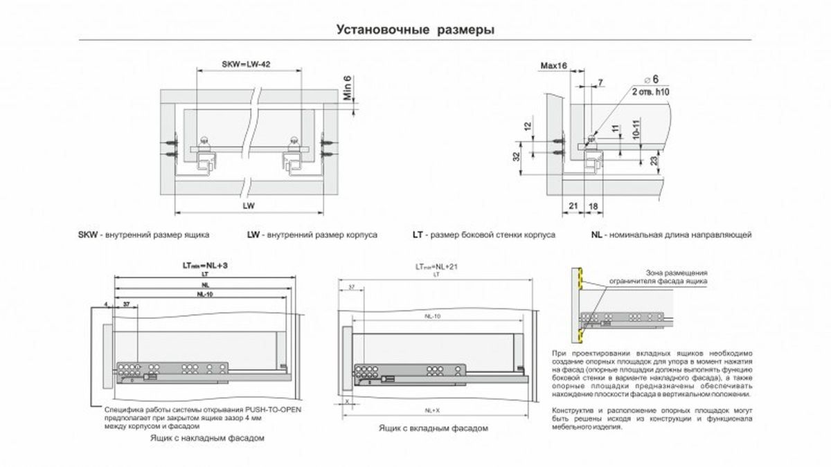 176 неполного выдвижения с опцией открывания легким нажатием на фасад (push-to-open), со способом установки мебельного ящика при помощи надвижного монтажа.
