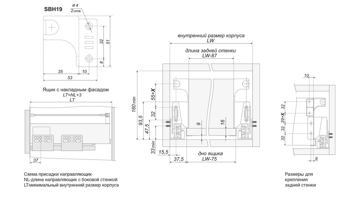 SBH19 – держатель продольного рейлинга. SBH19 открывает новые возможности и позволяет формировать ящики любой желаемой высоты.