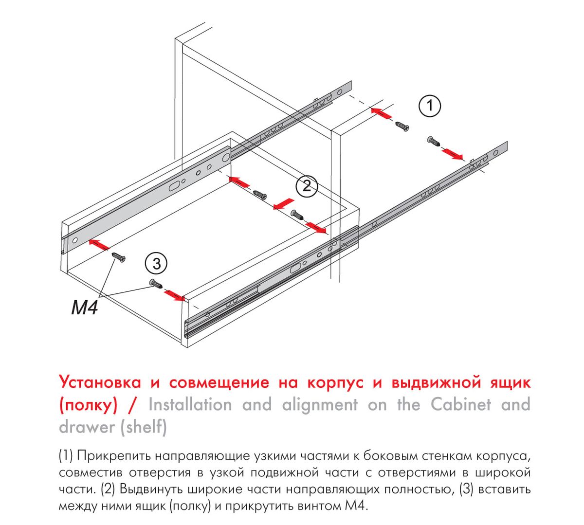 Направляющие шариковые для небольших выдвижных ящиков и полок. Телескопический механизм неполного выдвижения (3/4 длины), двухсекционный, неразборный, с упором и защитой от выкатывания.