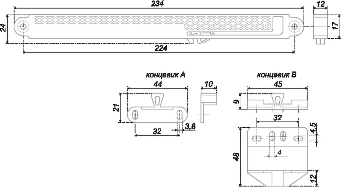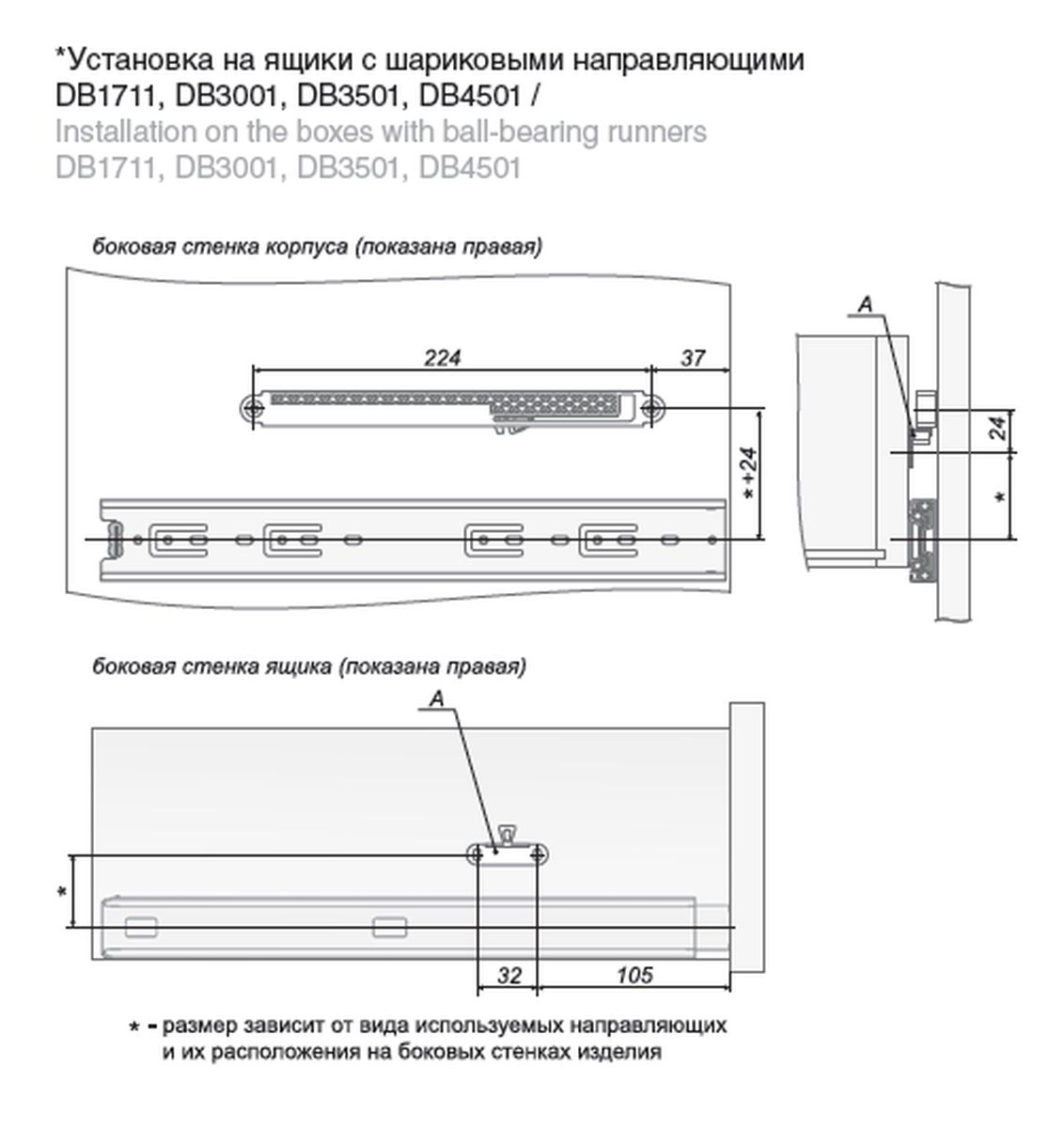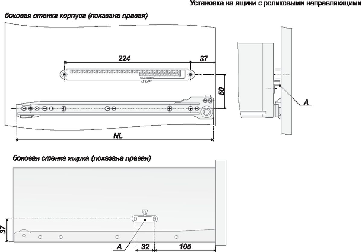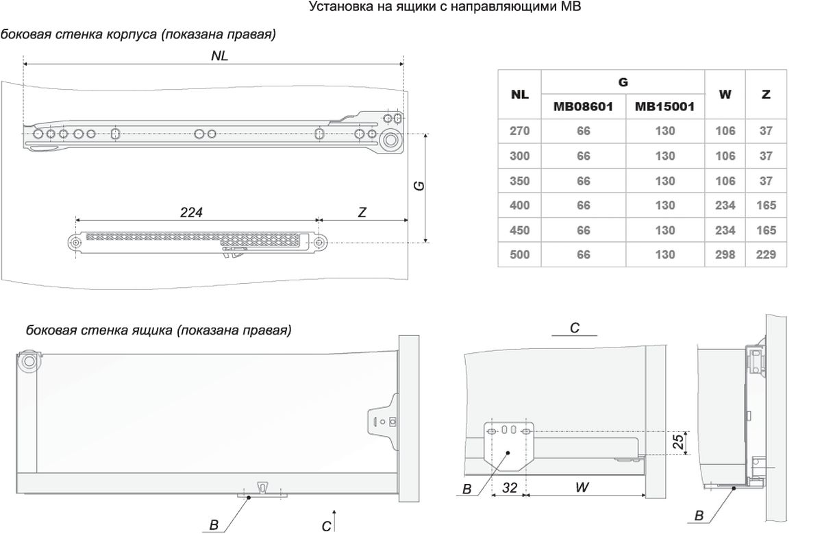 Доводчик мебельный для роликовых и шариковых направляющих, направляющих MB.