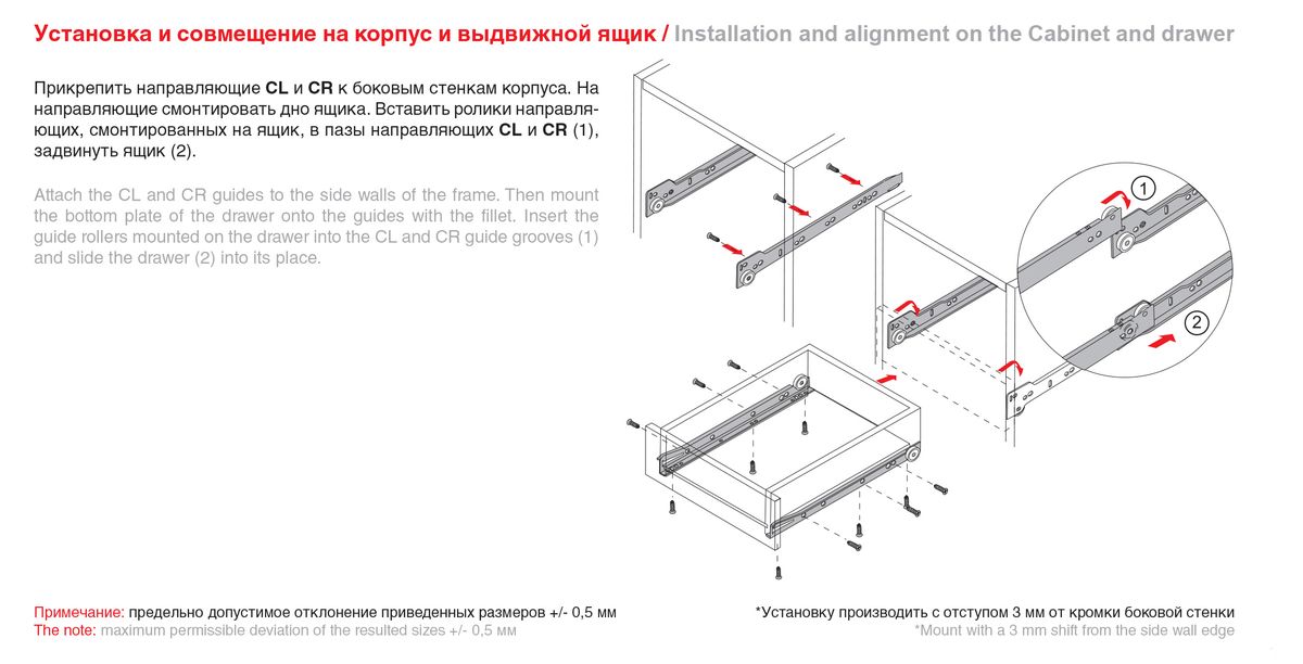 Направляющие роликовые для мебельных ящиков. Выдвижной механизм одинарный, неполного выдвижения, с самозатягиванием, двойным остановом и защитой от выкатывания. Форма профиля имеет дополнительное ребро жесткости. Ролик цельный, материал ролика POM.