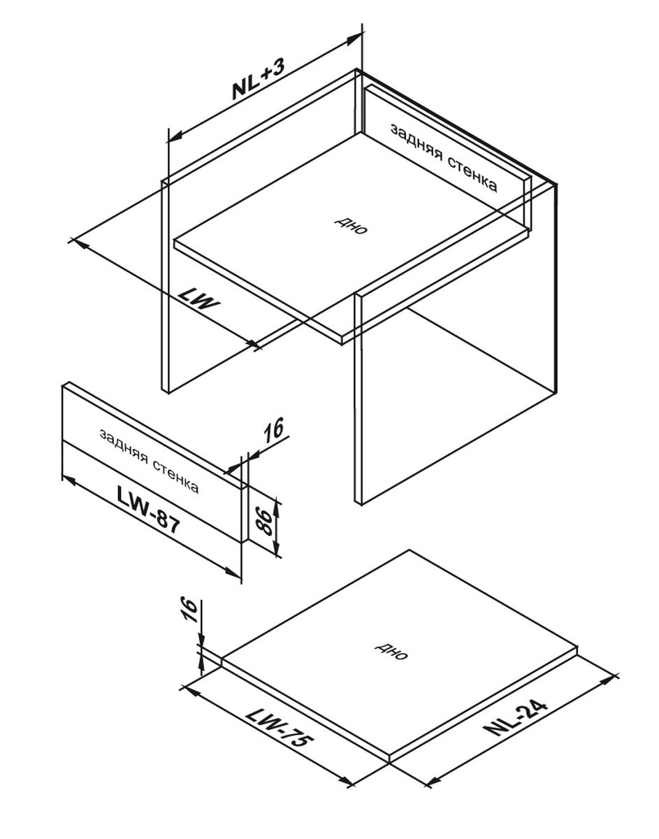 Для сборки выдвижного мебельного ящика с помощью боковин SBDW11 необходимо самостоятельно изготовить фасад, заднюю стенку и дно ящика с учетом собственных пожеланий и потребностей по ширине и высоте готового ящика.