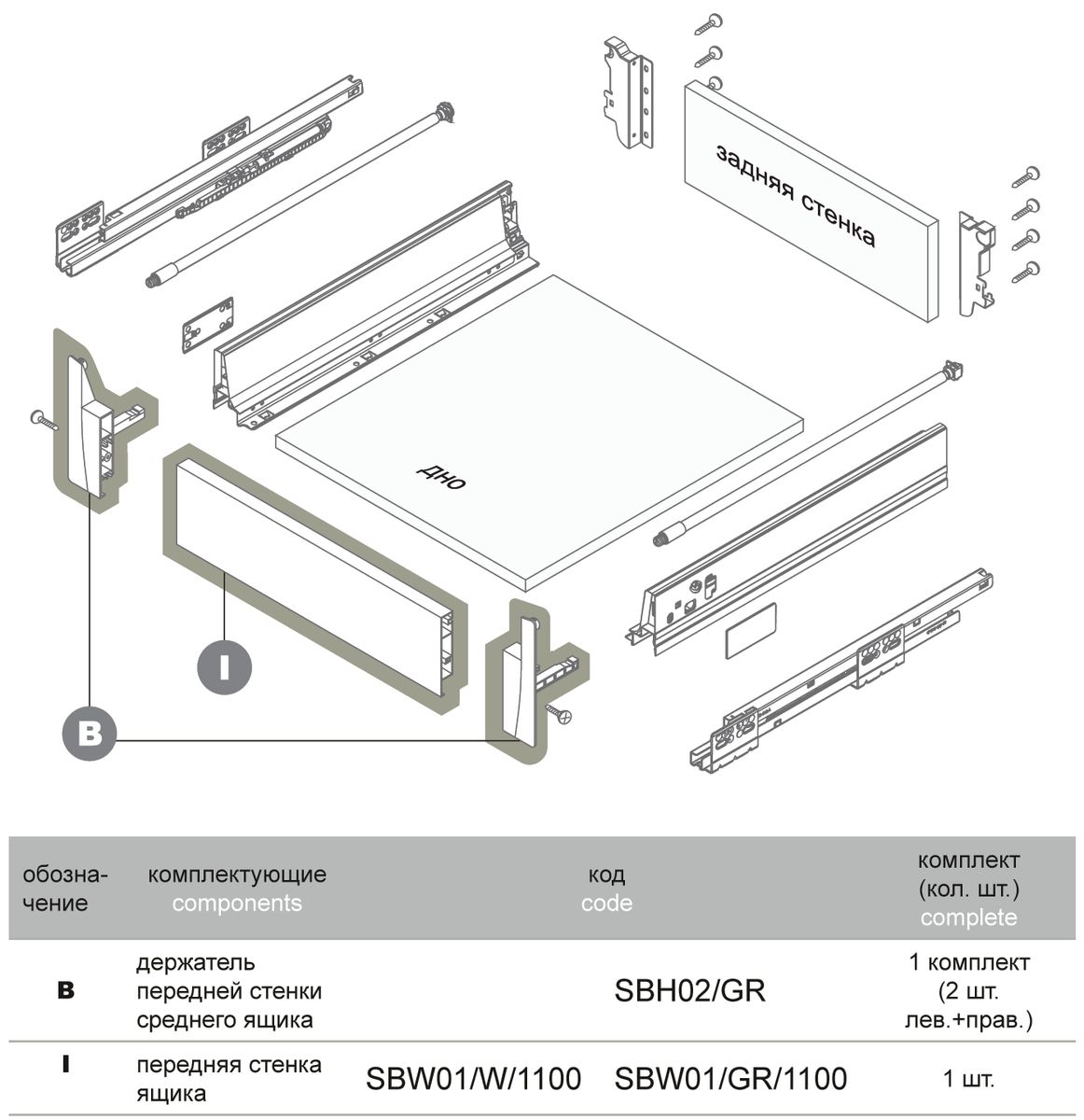 Держатель передней стенки среднего ящика SWIMBOX SBH02/W