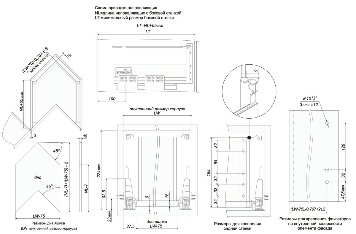 Держатель задней стенки высокого углового ящика предназначен для надежной фиксации задней стенки с боковинами углового ящика под минимально необходимый проем 224 мм. Необычная «ломаная» форма задней стенки, под прямым углом, требует выверенного крепежного решения. Поэтому для возможности формирования прочного углового ящика BOYARD предлагает специальный держатель, отвечающий всем требованиям формы задней стенки.