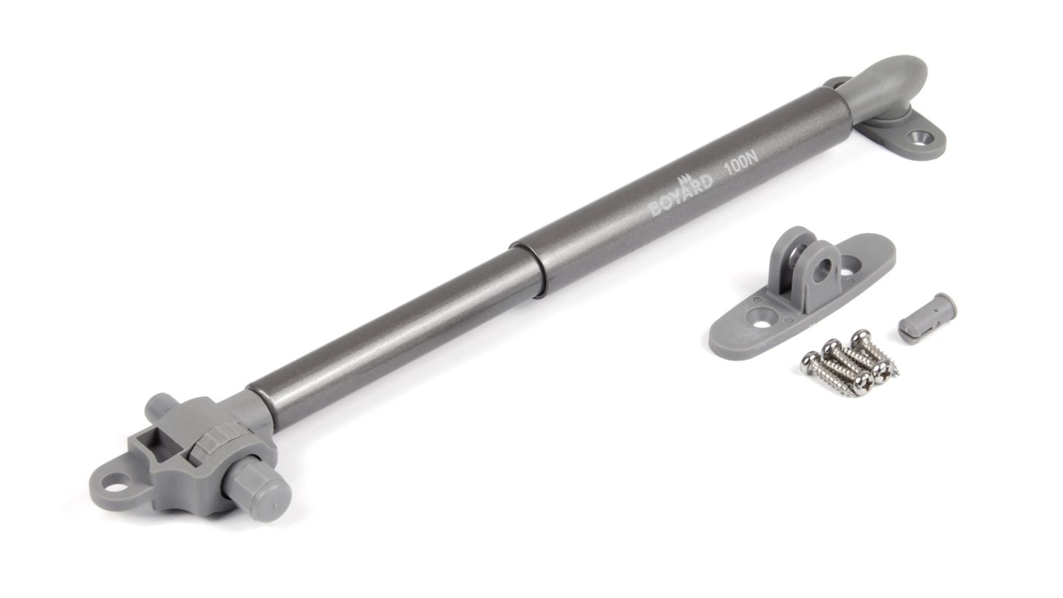 Газовый лифт GL106 — традиционное решение для подъёма фасадов в новом, стильном дизайне. Модель обладает встроенным амортизатором и возможностью регулировки угла срабатывания демпфера. Механизм мягко закрывает фасад без установки дополнительных AMF. Регулировка момента срабатывания демпфера позволяет выставить угол, с которого фасад начнёт плавно закрываться.