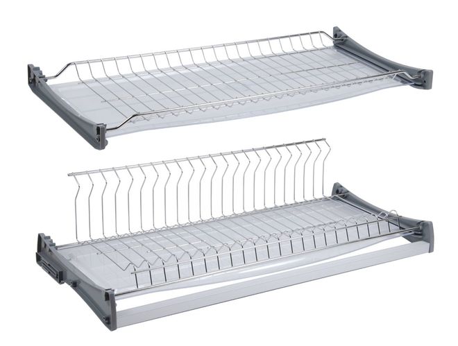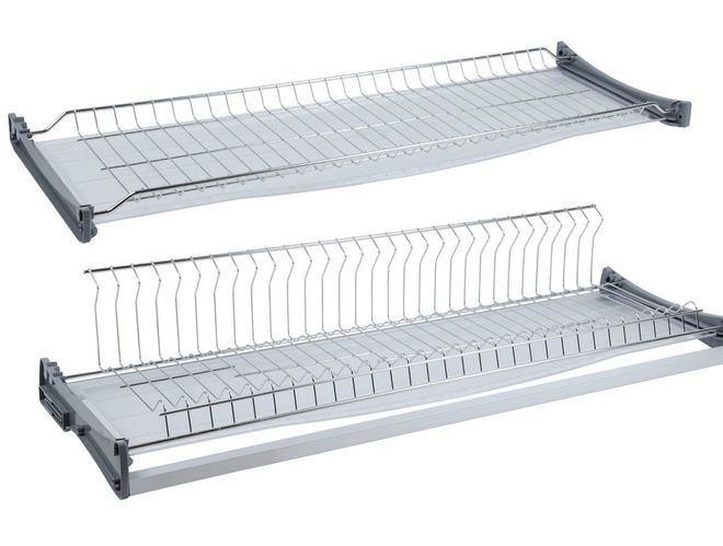 GLORIA SU16 – сушка для посуды в верхнюю базу из прутковой нержавеющей стали для мебели из плит толщиной 16 мм. Модель монтируется в короб без малейших зазоров, как влитая. Более прочная фиксация сушки возможна за счёт крепления трубки к держателю на дополнительный саморез, находящийся под трубкой.