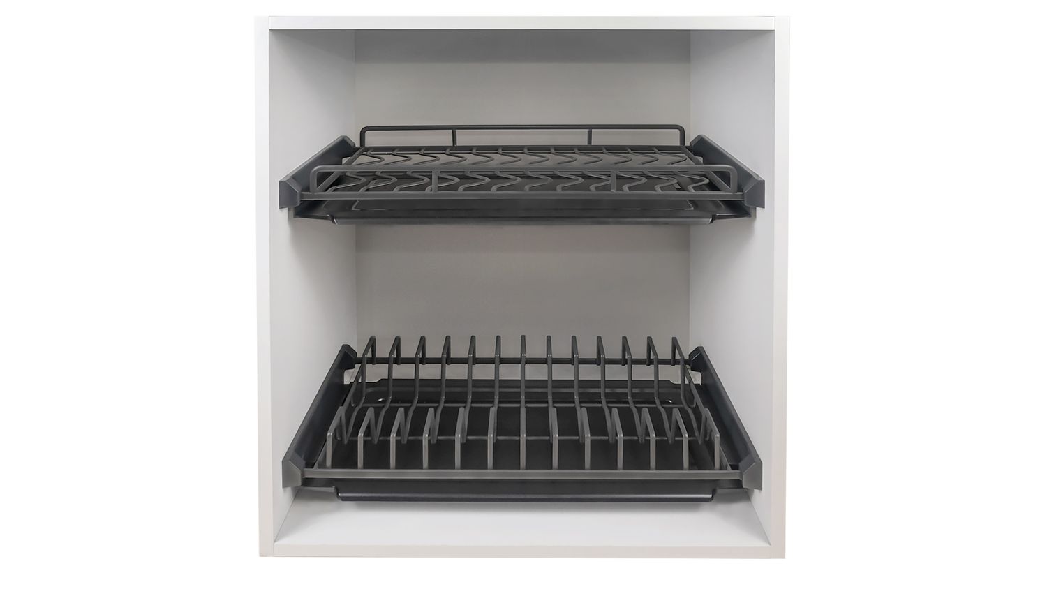 Каждый «этаж» PANDORA оснащён поддоном из плотного пластика графитового цвета, который легко вынимается для чистки. Выверенный узор решёток позволяет размещать тарелки популярного формата, а утолщённые прутки способствуют лучшему удерживанию посуды. Модель предусматривает лёгкую регулировку и надёжную фиксацию положения решёток с помощью специального ключа, который идёт в комплекте. Благодаря регулировке и фиксации возможно достичь идеального, неподвижного положения решёток в пазах пластиковых держателей. Весь крепёж закрыт крышками держателей и надёжно защищен от влаги. Сушка подойдёт для кухонь современных стилей, в том числе лофт.