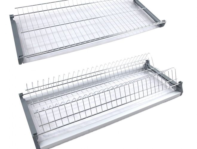 Размер пластиковых поддонов рассчитан под мебельные модули, которые предполагают использование плиты 16 мм. Для адаптации поддонов сушки к проему, полученному при использовании плитных материалов толщиной 18 мм, необходимо аккуратно обрезать поддоны по 2 мм с каждой стороны.