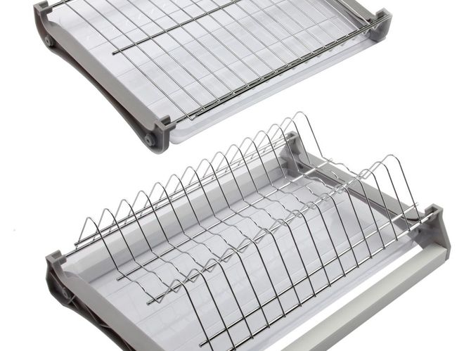 Размер пластиковых поддонов рассчитан под мебельные модули, которые предполагают использование плиты 16 мм. Для адаптации поддонов сушки к проему, полученному при использовании плитных материалов толщиной 18 мм, необходимо аккуратно обрезать поддоны по 2 мм с каждой стороны.