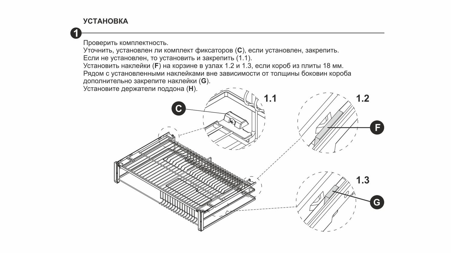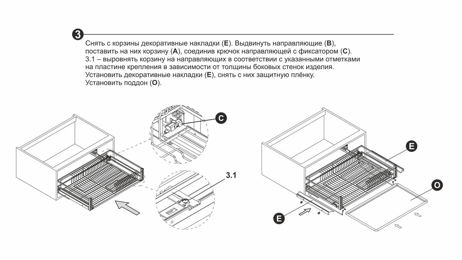 Для бесшумной работы изделия предусмотрены специальные демпфирующие вставки, прикрепить которые можно в места контакта корзины с выступами направляющих.