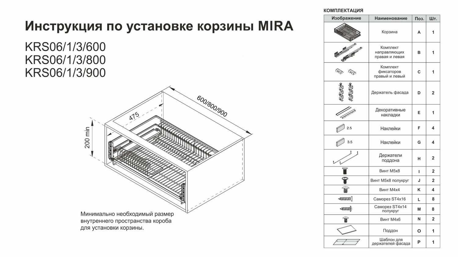 Выдвижная корзина-сушка MIRA KRS06/1/3/600