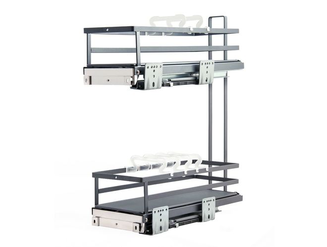 Модель обладает стильным европейским внешним видом, плоской формой боковых прутков корзин. Сплошное дно с антискользящим покрытием и дополнительные съемные делители FLORA гарантируют максимальную устойчивость хранимой утвари на обоих этажах. Кроме того, дно можно легко снять для чистки и мытья.