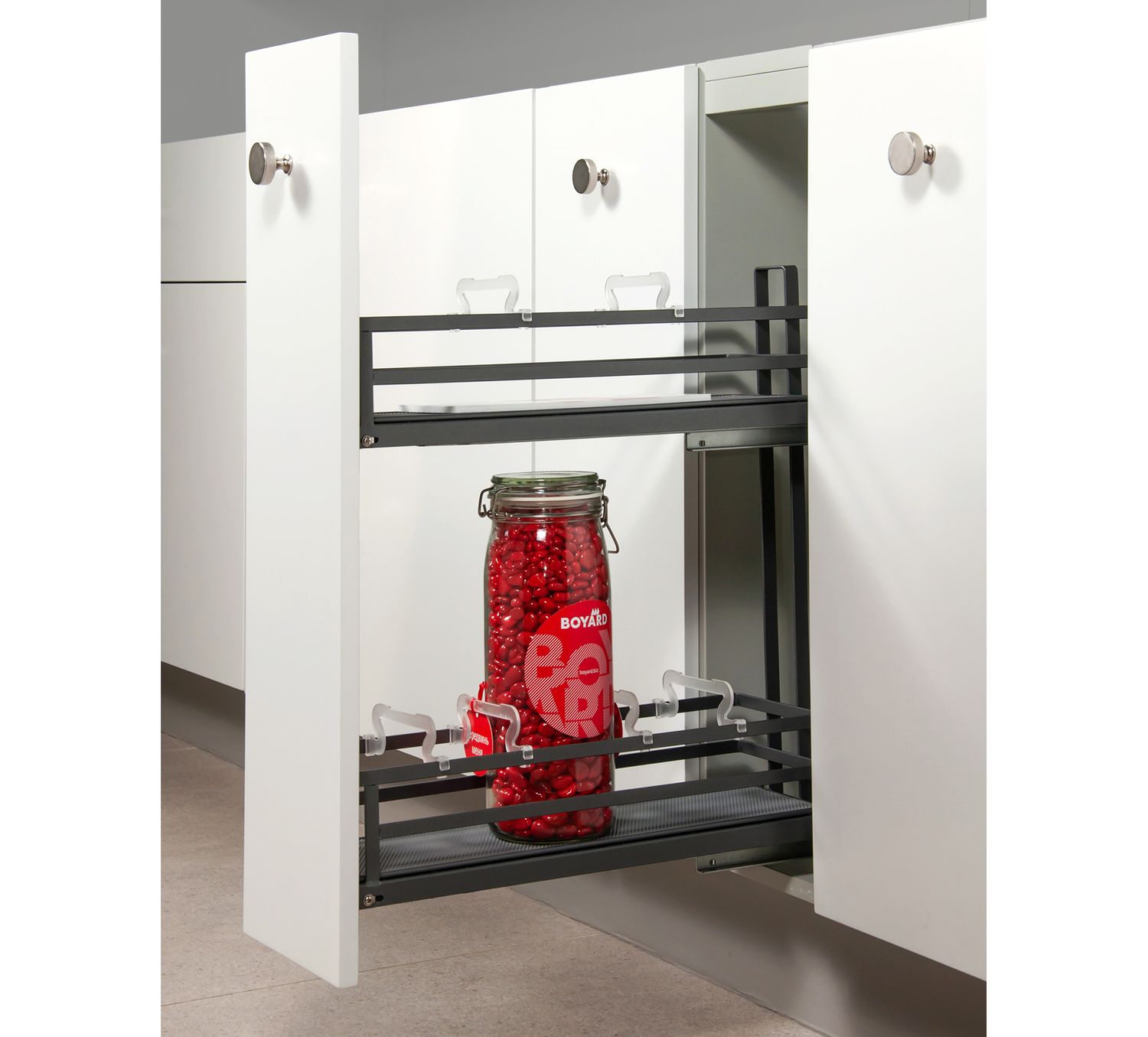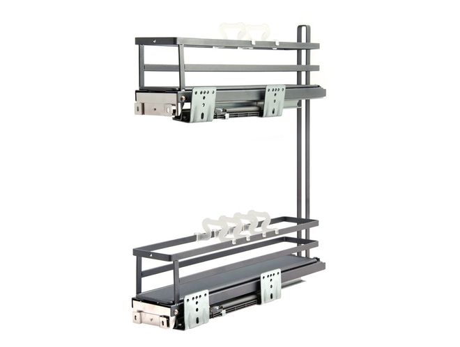 Модель обладает стильным европейским внешним видом, плоской формой боковых прутков корзин. Сплошное дно с антискользящим покрытием и дополнительные съемные делители FLORA гарантируют максимальную устойчивость хранимой утвари на обоих этажах. Кроме того, дно можно легко снять для чистки и мытья.