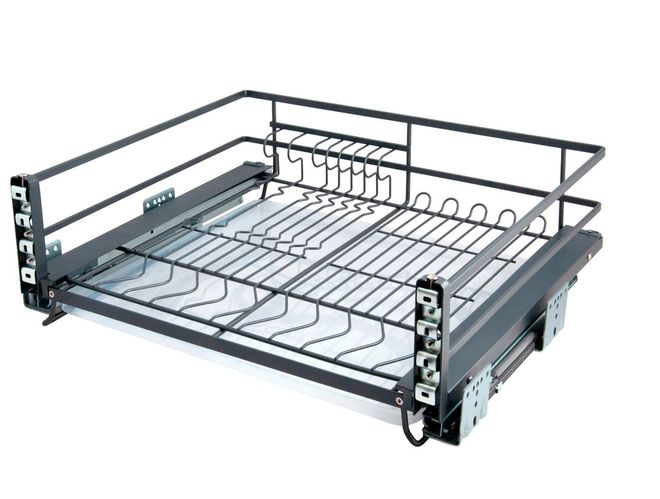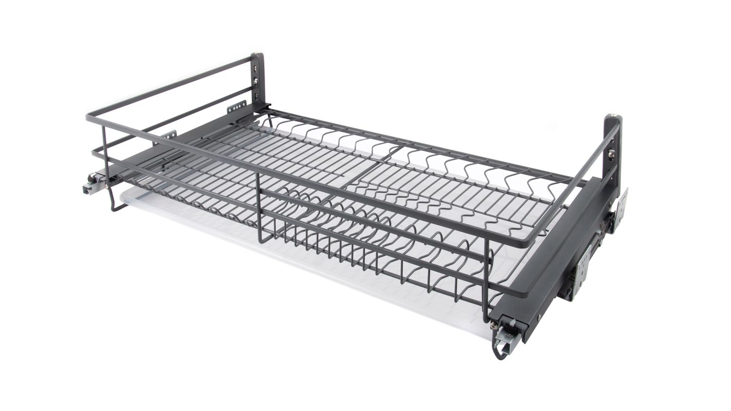 Выдвижная корзина-сушка CARMA KRS05 в порошковом покрытии графитового оттенка с плоским прутком предназначена для хранения разноплановой посуды в нижней базе мебельного гарнитура. Продуманная схема расположения внутренних отсеков корзины позволяет одинаково качественно просушить как крупные и глубокие тарелки, крышки, кастрюли, так и небольшие блюдца и чашки. Модель оснащена удобным поддоном из современного экологичного пластика для сбора стекающих с посуды капель. Поддон легко снимается для чистки и мойки. CARMA устанавливается на направляющие с синхронизацией и доведением длиной 450 мм. Модель предложена в трёх вариантах ширины – 600, 800 и 900 мм. Качественное современное порошковое покрытие обладает повышенными прочностными и антикоррозийными свойствами.