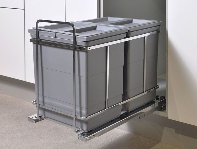 Опциональный комплект держателей фасада с 3D-регулировкой для установки выдвижной мусорной корзины MAX KR32 в отдельный мебельный короб. Комплект состоит из 2 верхних и 2 нижних держателей фасада и 2 декоративных пластиковых заглушек. Кроме того, в комплекте уже есть весь необходимый для установки держателей крепёж.
