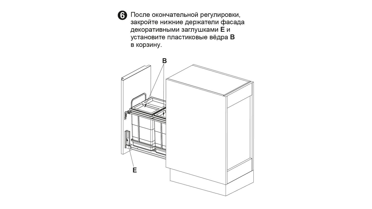 Корзина предназначена для возможной установки в базу с распашными фасадами под мойкой на дно мебельного короба и оборудована ручкой для её более удобного извлечения из нижней базы. Однако при желании, возможно оборудовать корзину опциональными держателями фасадами KRK06 для установки в отдельный мебельный короб.