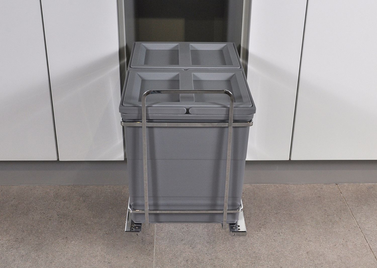 Выдвижная мусорная корзина MAX KR32 – современное сетчатое решение для обращения с мусором в бытовых домашних условиях. В корзину устанавливаются два легко вынимаемых пластиковых ведра универсального серого цвета с удобными ручками, по 11 литров каждое.