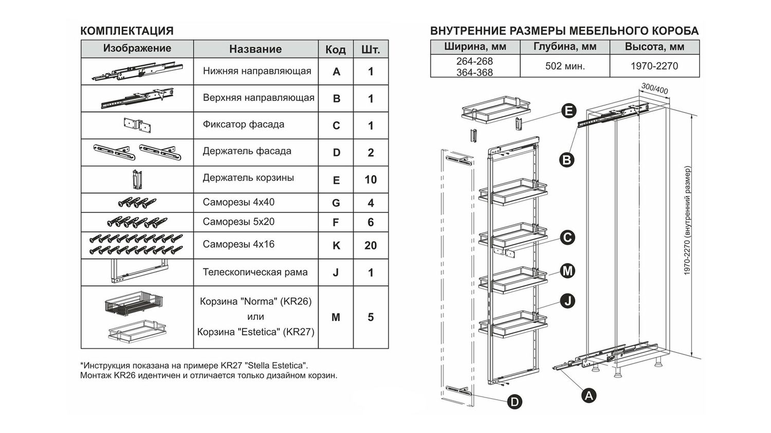 Колонна Stella Estetica предложена шириной 300 и 400 мм, а высота варьируется от 1970 до 2270 мм – именно такие параметры кухонных пеналов наиболее популярны в российских и белорусских кухнях.