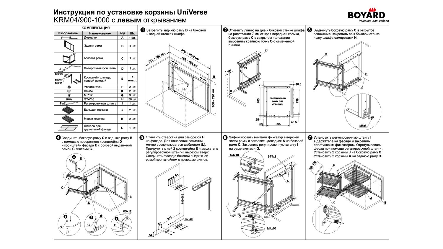 Один комплект UNIVERSE реализуется в двух коробках: в одной поворотно-выкатной механизм, во второй – 4 корзины