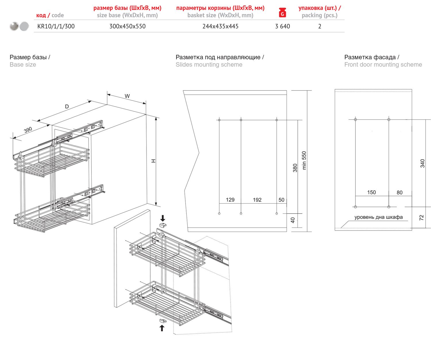 Покрытие корзины – актуальный и стильный цвет полированный хром. Для удобства производителей мебели в комплекте корзины уже есть весь необходимый крепеж.
