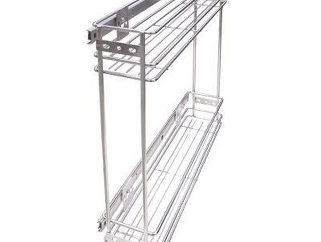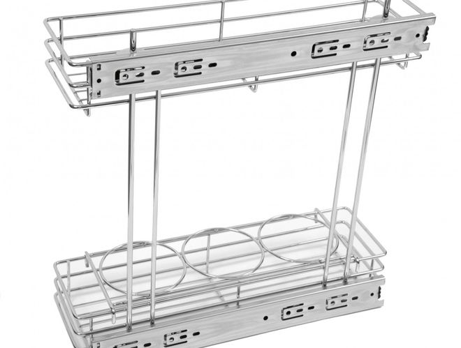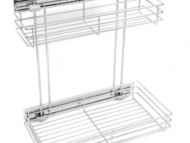 Удобная и вместительная выдвижная корзина займет место в шкафах-тумбах, так называемых «колоннах» или в нижних модулях гарнитура. Объем и формат корзины предполагают размещение практически любых необходимых в хозяйстве предметов. На нижнем уровне системы можно расположить кастрюли, чугунки, горшочки, гусятницу и т.п. Верхний «этаж» корзины подойдет для предметов поменьше: чашек, салатниц, вазочек, коробочек, банок с любым содержимым.