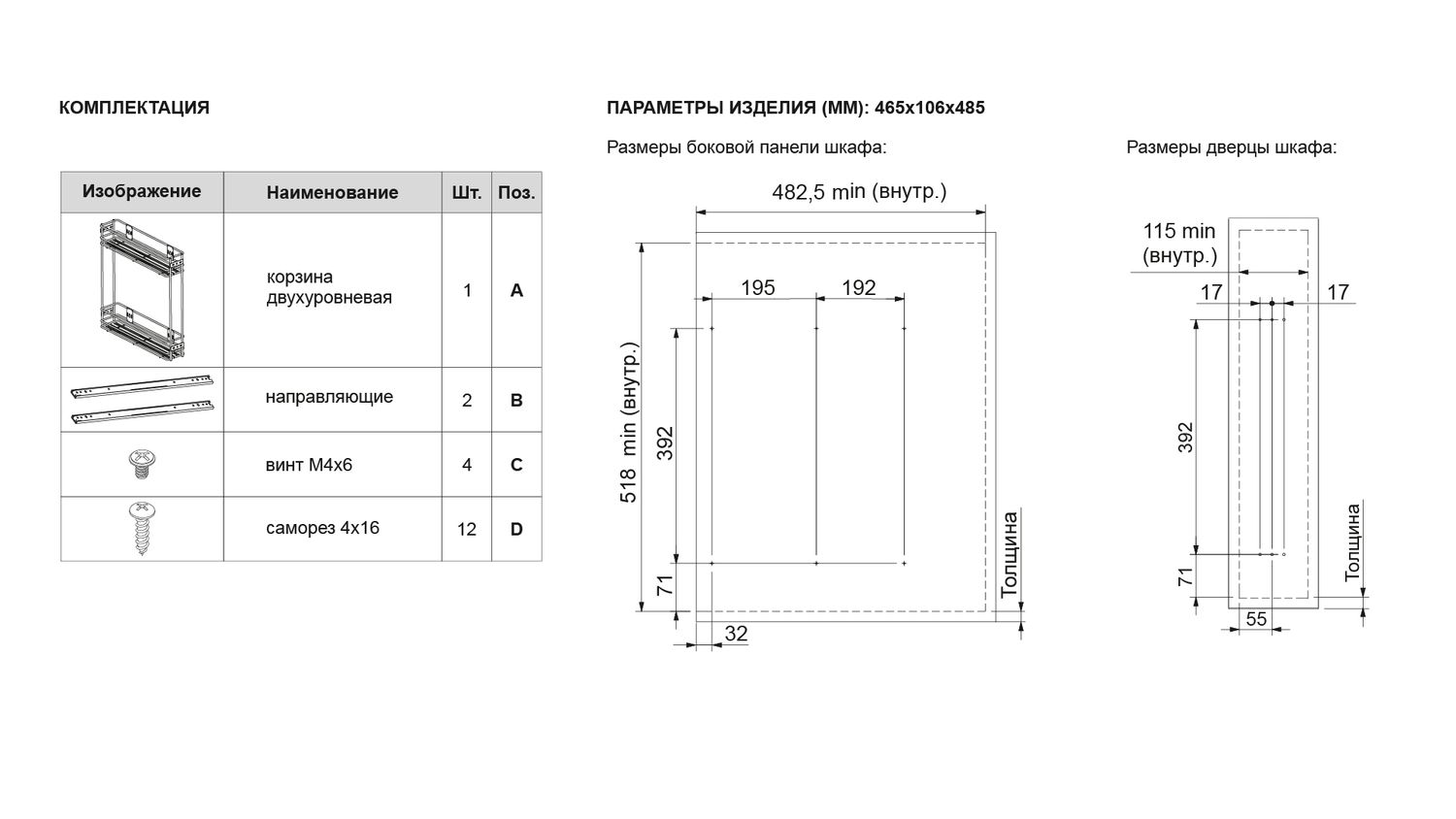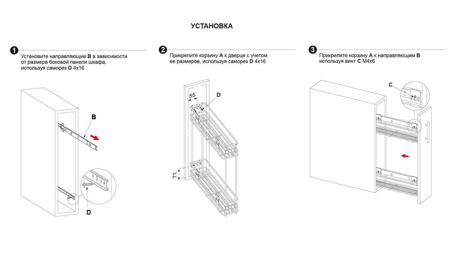Корзина решена в цвете полированный хром и продолжает стильный дизайн кухонного интерьера во внутреннем пространстве. Для удобства производителей мебели в комплекте корзины имеется весь необходимый крепеж.