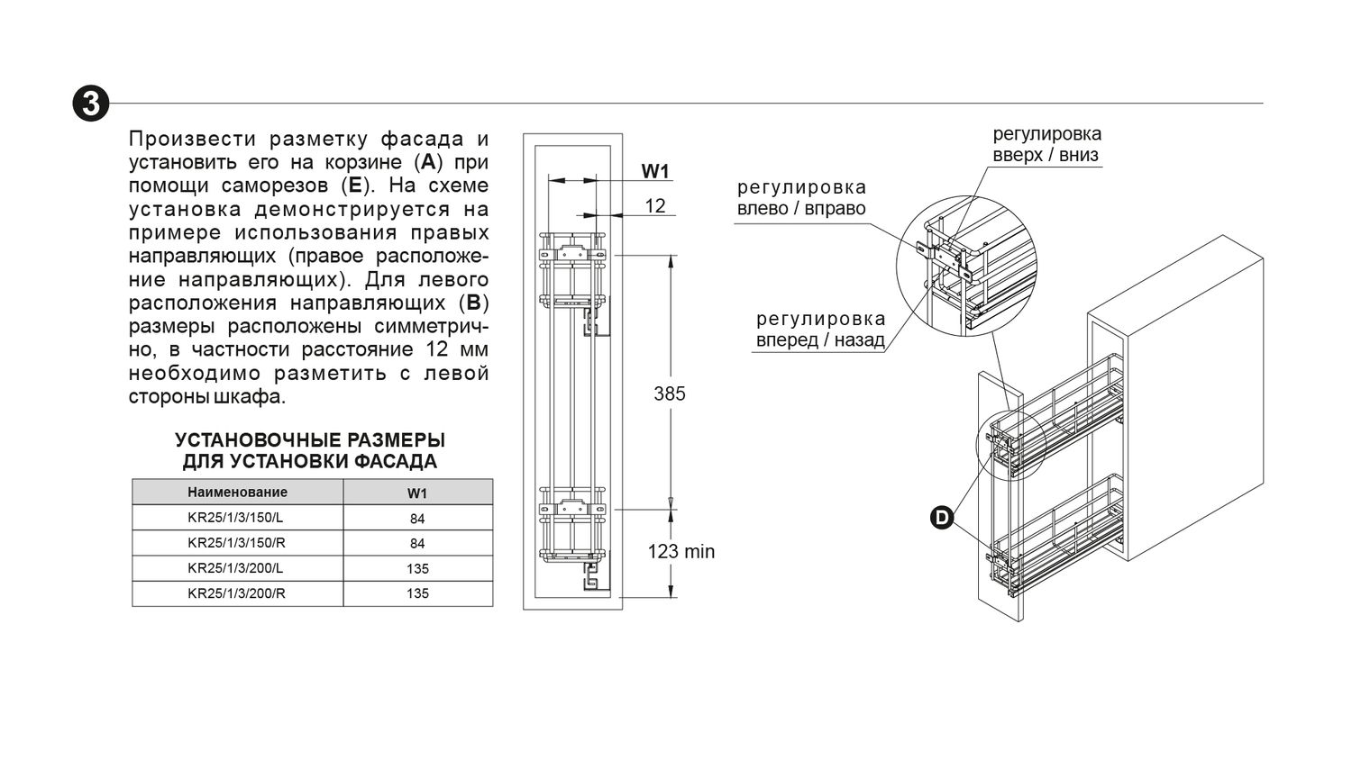 Модель представлена в 4-х вариантах: для модулей размером 150 мм и 200 мм с левым или правым расположением направляющих. Имеет жесткое крепление к фасаду. Нагрузка 15 кг для модели шириной 150 мм и 20 кг – для 200 мм соответственно.