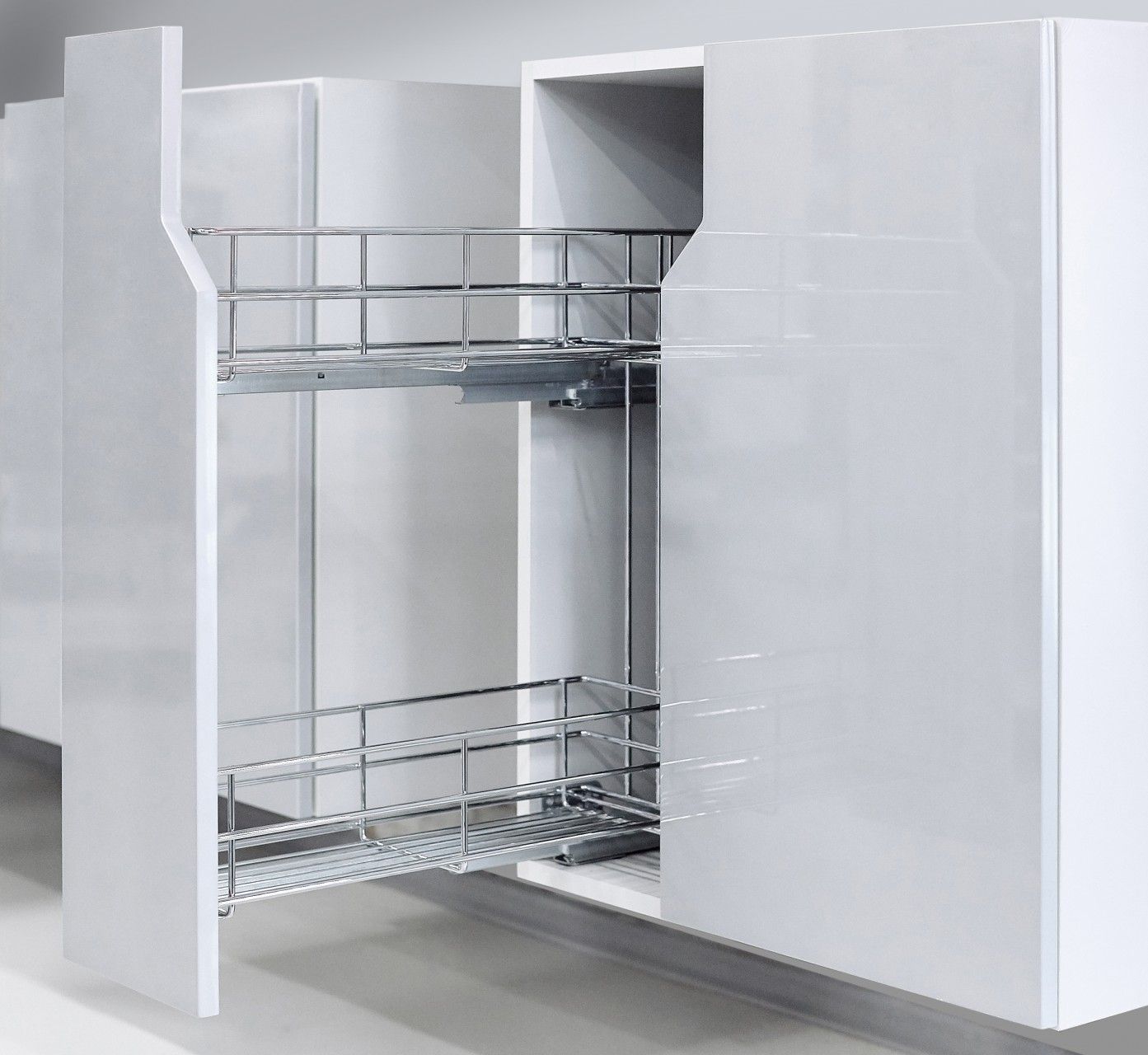 Современная модель бутылочницы Bella с системой выдвижения нового поколения с амортизацией и синхронизацией бокового крепления предназначена для удобного и безопасного хранения бутылок разной высоты на нижней сетке и более мелких на верхней. Изящная и стильная, модель займет узкие ниши в шкафах или пространствах в нижних модулях гарнитура. Такая сетчатая конструкция может стать хранилищем для различных бутылок с маслом, уксусом, соусами в зоне приготовления пищи, либо чистящих средств в зоне мойки, а также может заменить мини-бар, если использовать ее для хранения бутылок с алкоголем.