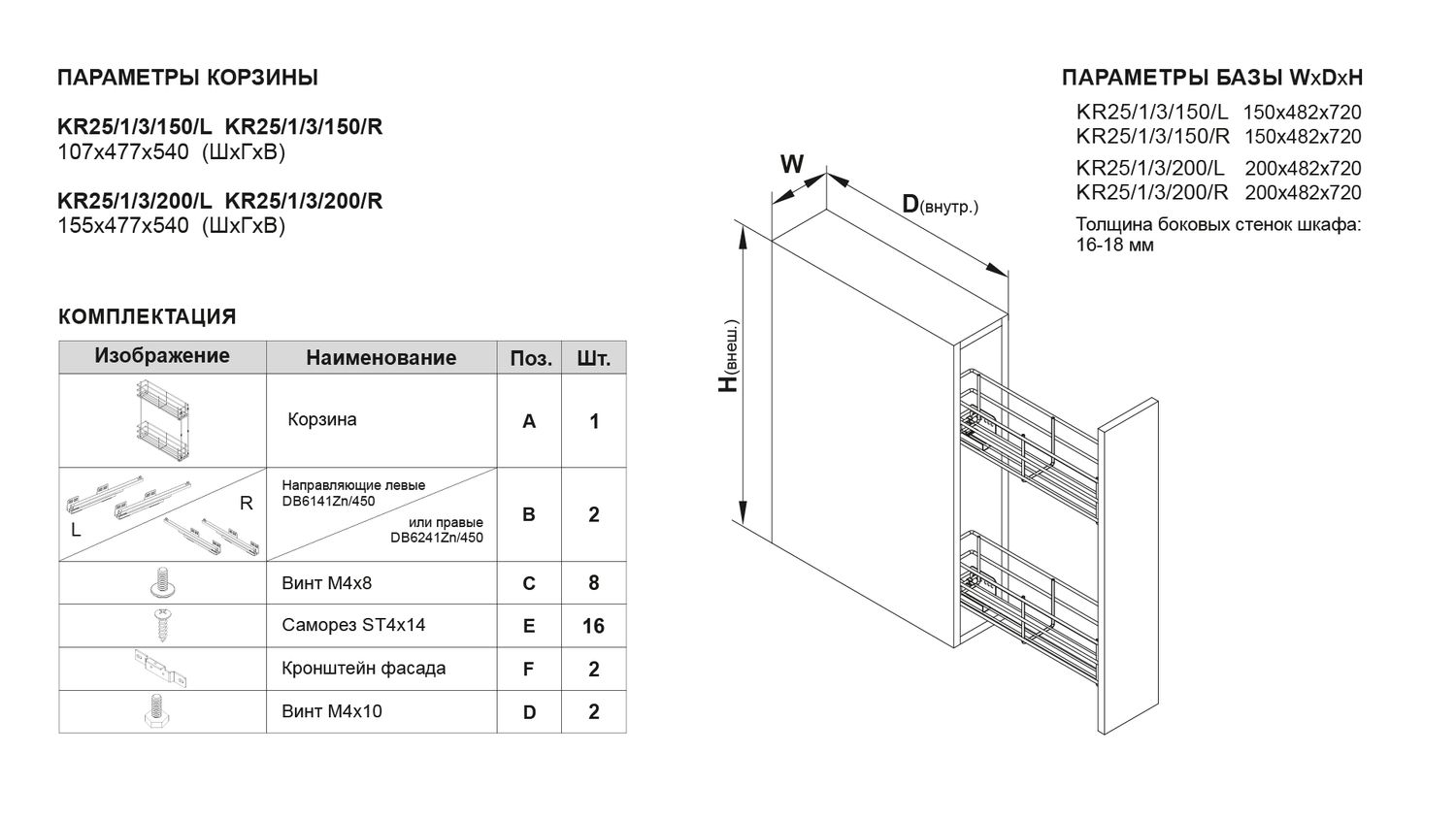 Выдвижная корзина для кухни BELLA KR25/1/3/200/R