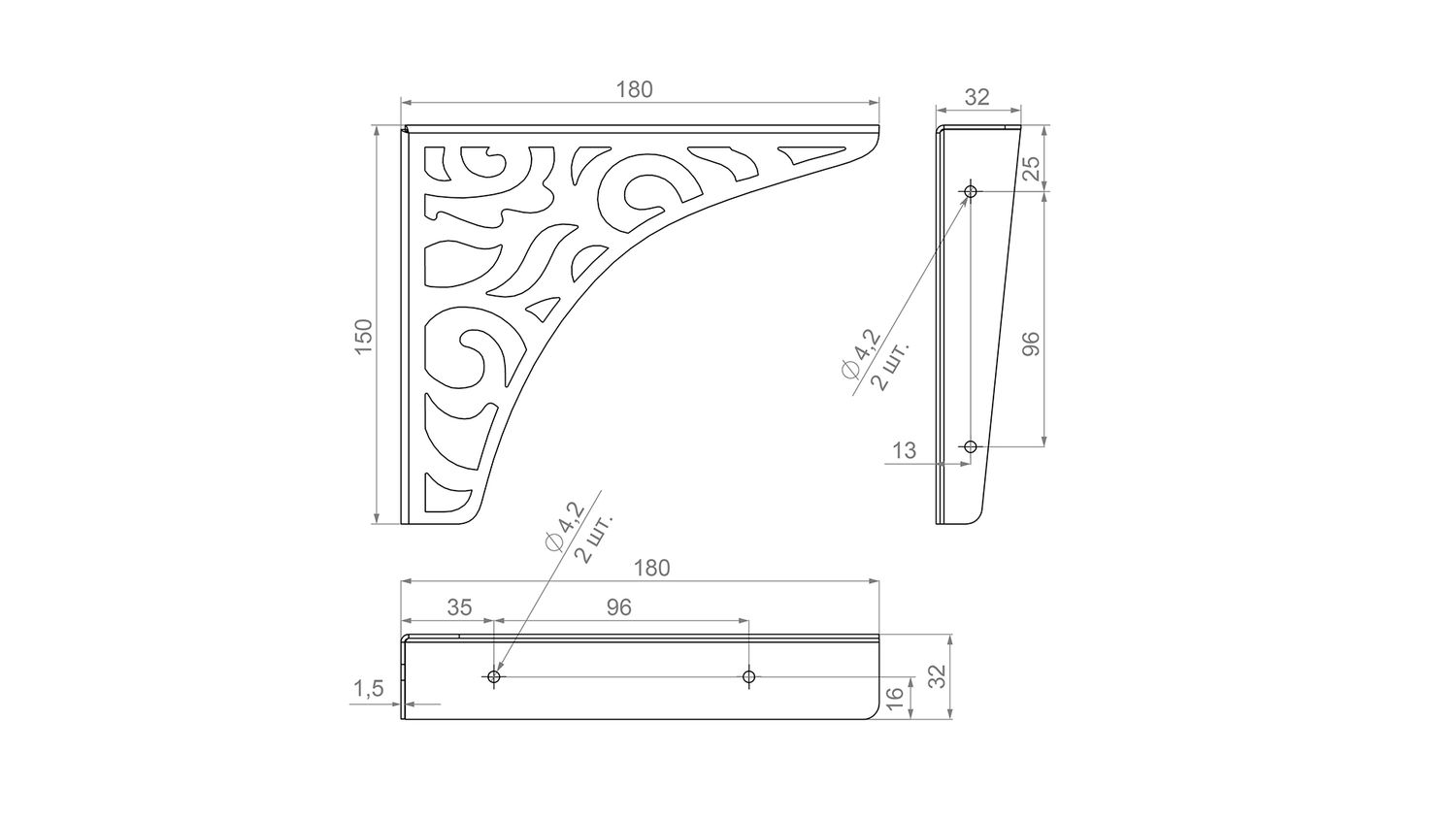 Конструкция изделия имеет кружевные вырезы по всей площади, что придаёт полкодержателю индивидуальный винтажный стиль. Модель станет отличным решением для неоклассических и скандинавских интерьеров.