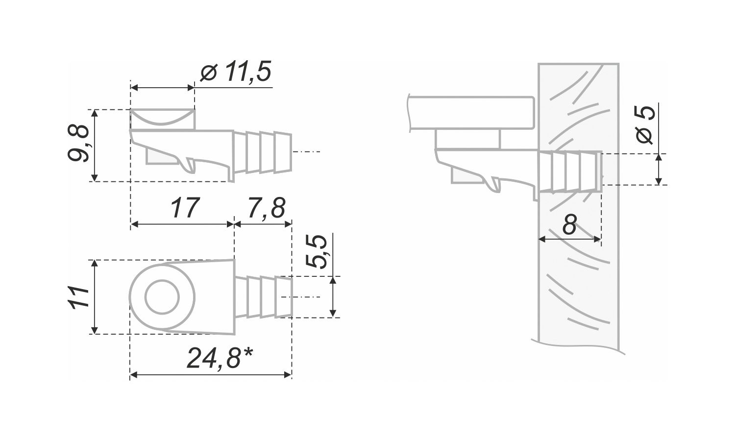 Полкодержатель металлический с вакуумной присоской из ПВХ, для стеклянных полок.