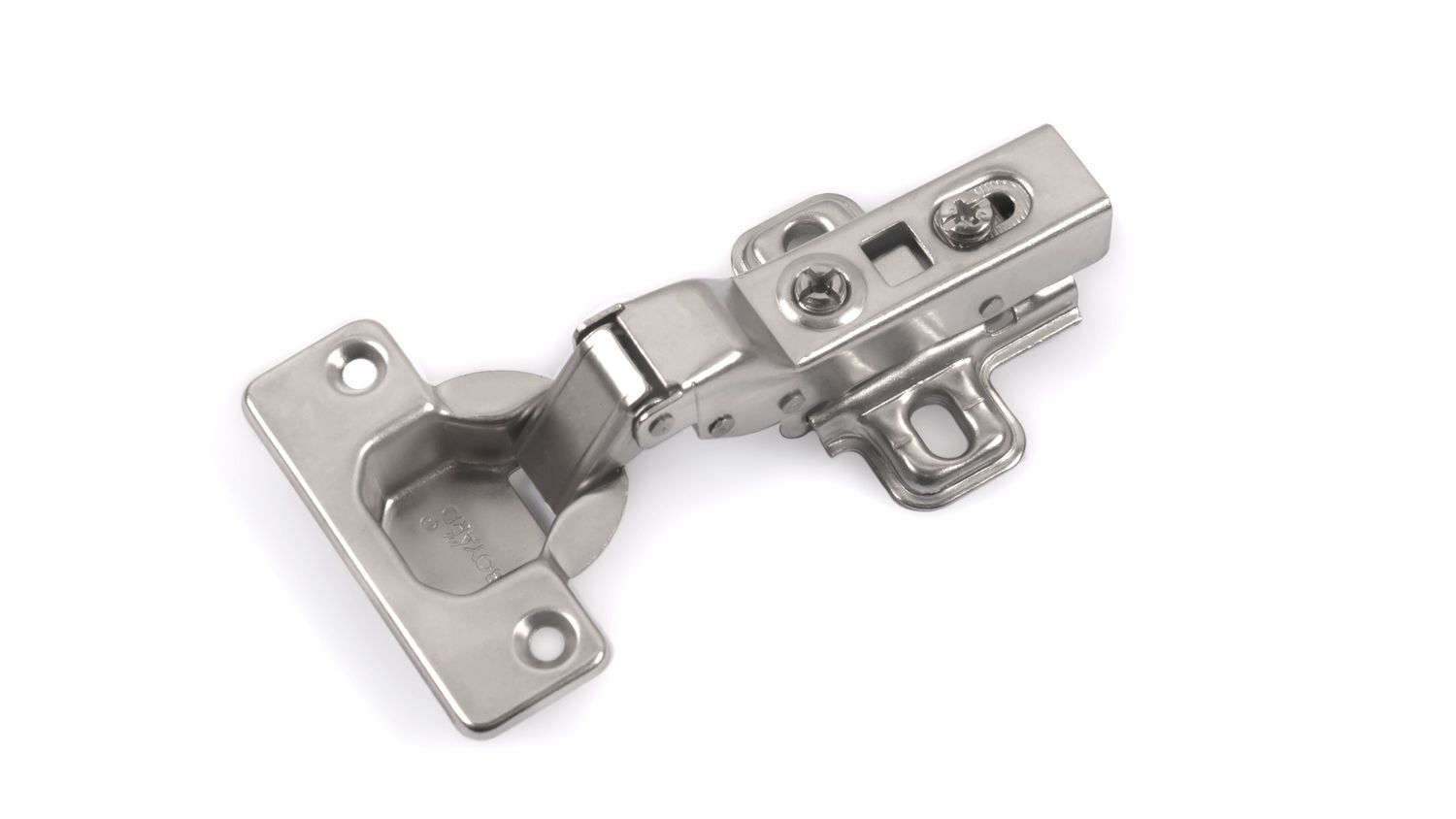 H302 – это четырехшарнирная цельнометаллическая вкладная петля системы Clip-on с амортизатором и уголом открывания 110°.