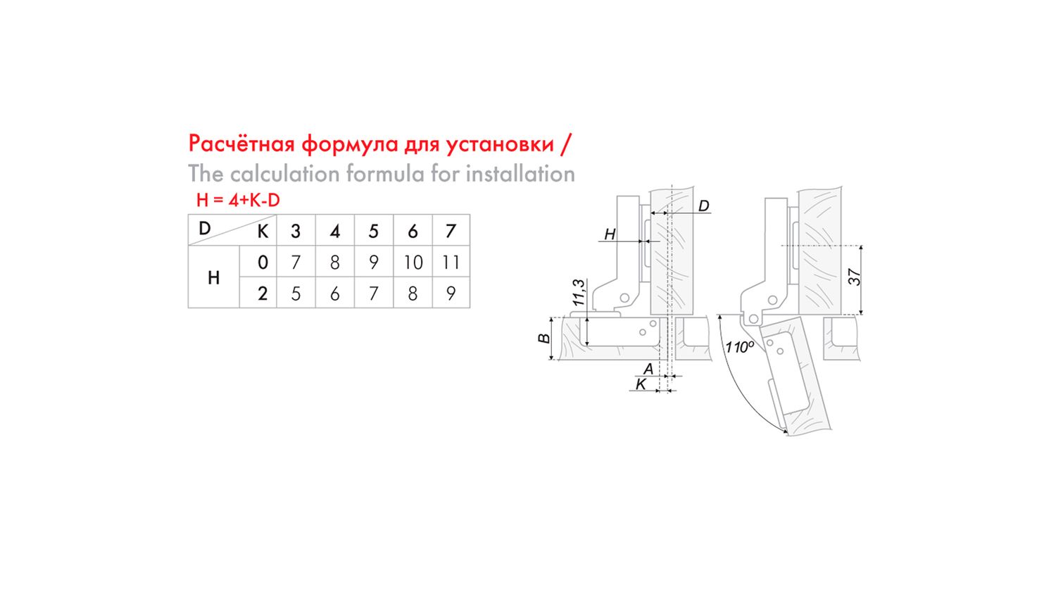 Способ монтажа петли: | Под евровинт и саморез, с d отверстий 5,5 мм |