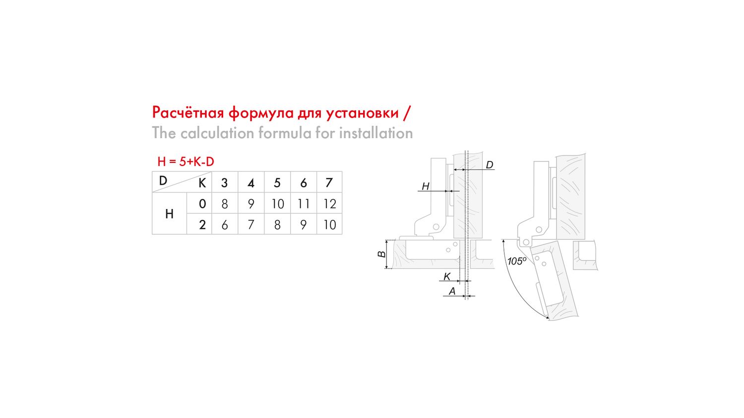 Петля предназначена для надежного крепления накладных, полунакладных и вкладных фасадов толщиной до 22 мм. H306 является двухходовой, с возможностью остановки фасада в полуоткрытом положении.