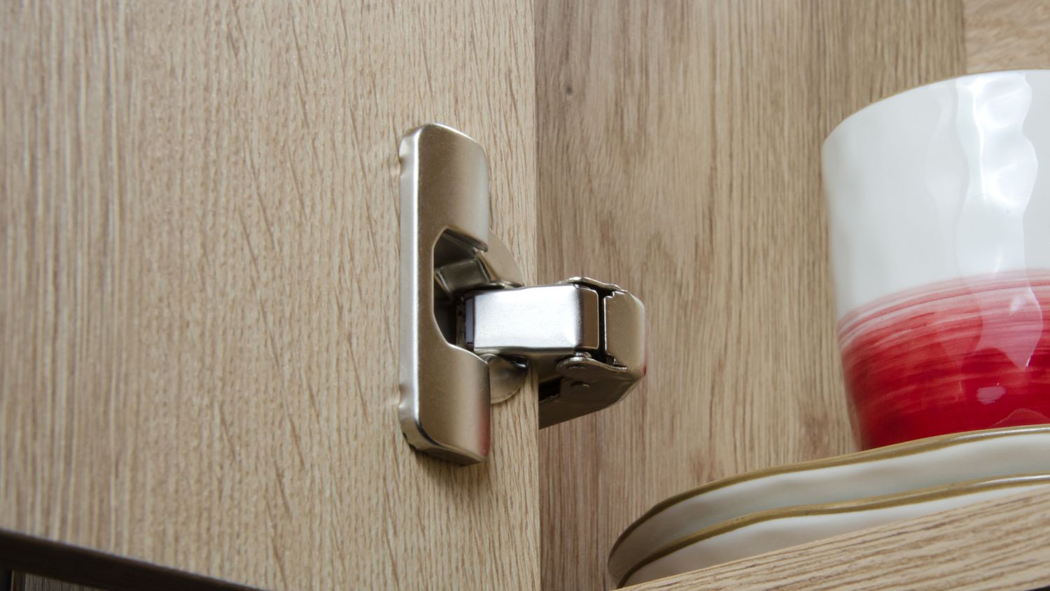 Регулировка фасада по горизонтали осуществляется путем ослабления крепежного винта, изменения положения корпуса петли и закрепления винта.
