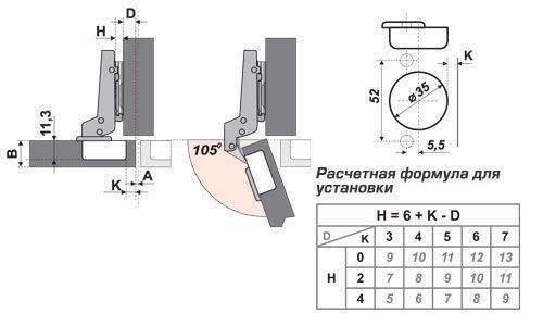 Тип петли: | Обычная, 110, Slide-on, мягкий ход |