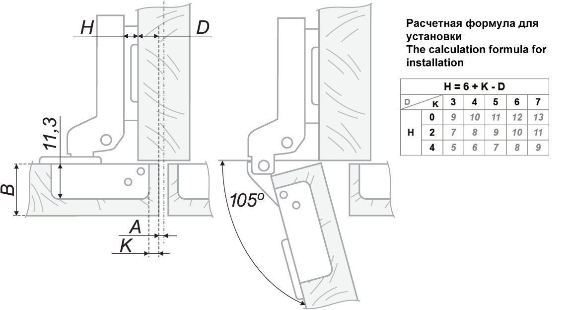 Способ монтажа петли:Под евровинт и саморез, с d отверстий 5,5 мм